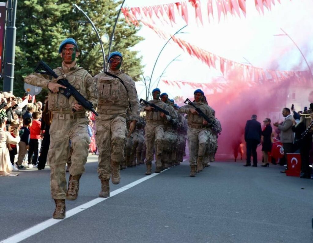 29 Ekim Cumhuriyet Bayramı’nın 101. yıl dönümü nedeniyle düzenlenen ve renkli görüntülere sahne olan kutlama programı, halk oyunları ekibinin gösterisi ve tören geçişiyle sona erdi.